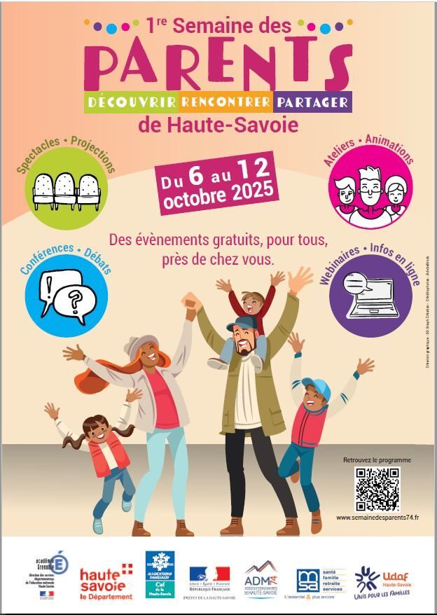 La 1ʳᵉ Semaine des Parents de Haute-Savoie se déroulera du lundi 6 au dimanche 12 octobre 2025. Une semaine dédiée à la découverte, aux rencontres et au partage pour tous les parents et futurs parents !